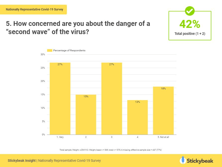 That is likely to have led to a decrease in worry around the potential of a second wave impacting New Zealand. This time last month, 57% said they were concerned or very concerned about the danger of a second wave. The number remains substantial, but has now dropped to 42%. There is broad support, meanwhile, of the strict international border measures, with only 9% opposing the controls.