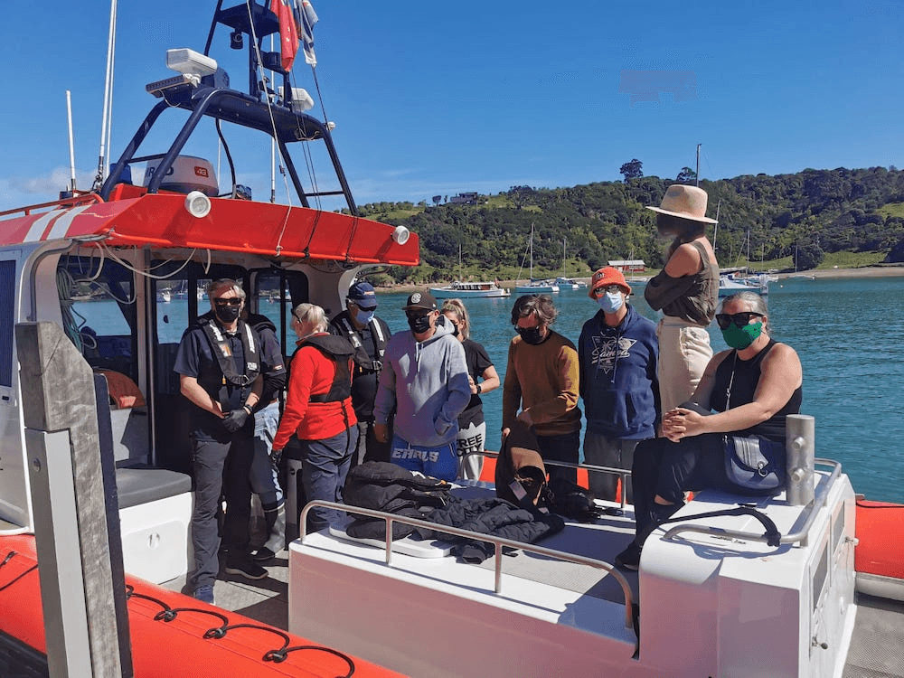 The Waiheke Volunteer Coastguard are en route from Rakino Island bringing their neighbours across to Waiheke for their vaccinations.