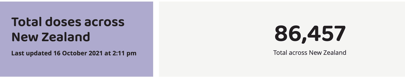 Here it is, created by The Spinoff’s Harkanwal Singh using data from the Ministry of Health. This counter is updated within minutes of new MoH data being released, and we’ll keep it near the top of this page so you can keep an eye on how we’re tracking. Remember – the target for today was 100,000 shots in arms.