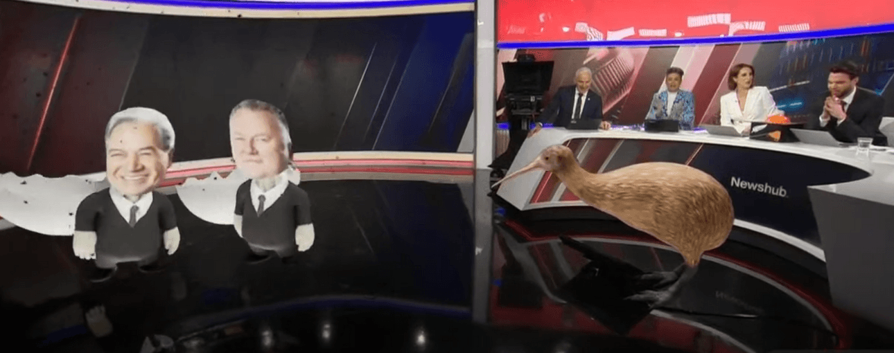 In one night, Newshub’s augmented reality bird gave birth to Andrew Hoggard, Efeso Collins, and in a particularly harrowing delivery, both Winston Peters and Shane Jones at once. As I understand it, giving birth is hard at the best of times. Having to do it on live TV seems cruel.