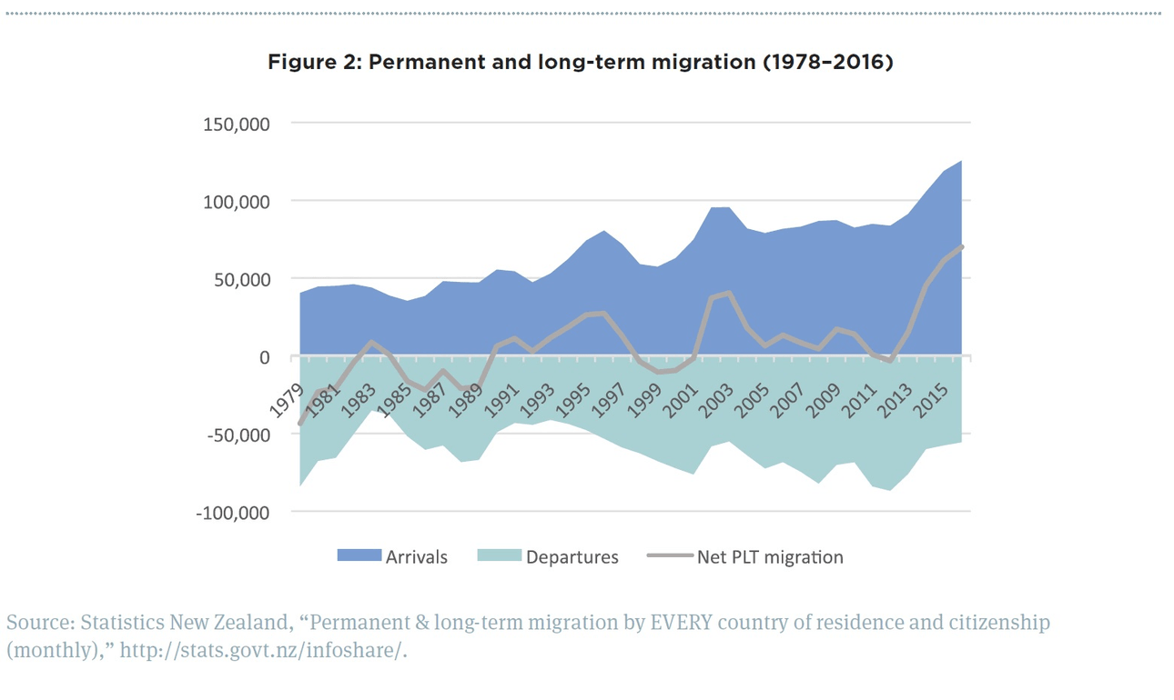 It was a big enough issue that John Key made it an election promise: he would reverse the outflow of Kiwis. And the numbers did reverse. A stronger NZ economy, weaker economies overseas, and madness in the UK all seemed part of the reasons for it. By 2016, almost as many New Zealanders were coming home as were leaving each year. And so the net migration figures turned very strongly positive.