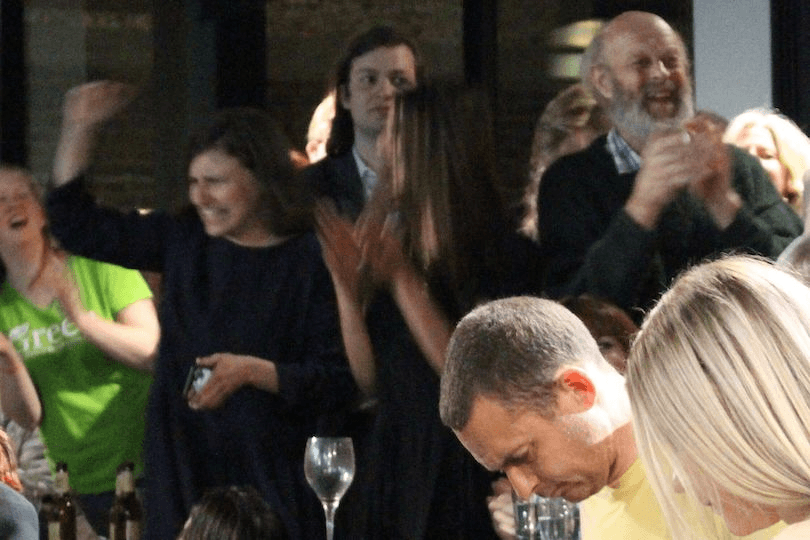 With only the first few percent of the vote in, Labour’s supporters are cheering in the bar when they’re shown to be ahead in an electorate. The beer and wine is flowing at the start of a night that could look good for the party. JG