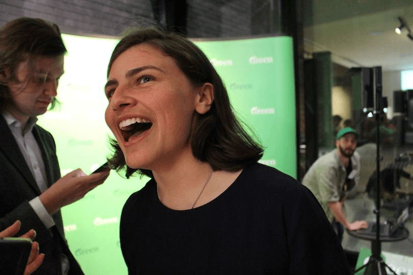 Chlöe Swarbrick is currently in the lead for Auckland Central and the crowd has gone wild. They’re absolutely fronting. Screaming can be heard through the halls. Chlöe is hard to spot as she’s wearing a navy dress instead of her campaign uniform of chinos and a button-up, but she’s smiling.