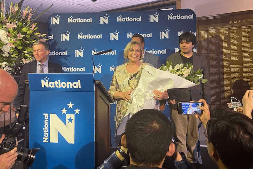 On the verge of tears, Collins thanked National’s volunteers, her family, and paid tribute to outgoing MPs who have lost their spot in parliament. She said she’ll make supporters proud over the next three years.