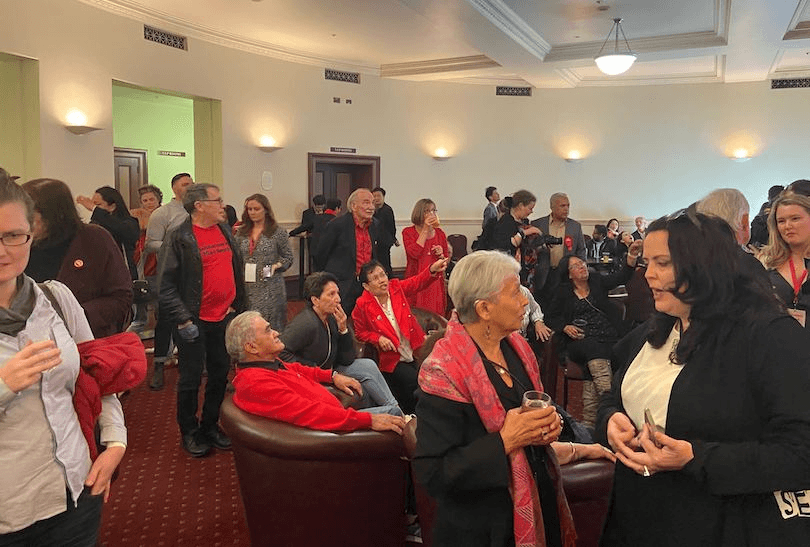 Co-conveners Wiremu Winitana and Penny Leach have kicked the party off with a mihi to those who came before: “We mihi to Jeanette, to Rodd, to Russell, and to Metiria,” said Winitana. Over the course of the campaign, the team of volunteers have made over 166,000 phone calls and knocked on more than 40,000 doors, when alert levels allowed. “It can only be called ‘unprecedented’,” joked Leach. JA