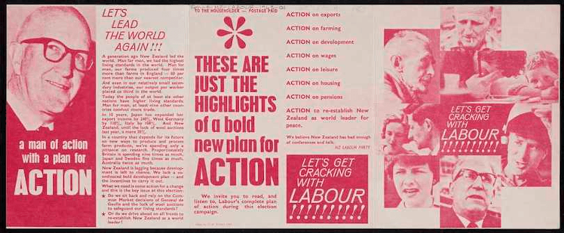 It’s crazy to think of a Labour slogan evoking cars, but then again this was 1966. More on brand is that Labour drove straight into a pothole in the 1966 election, with National taking office.