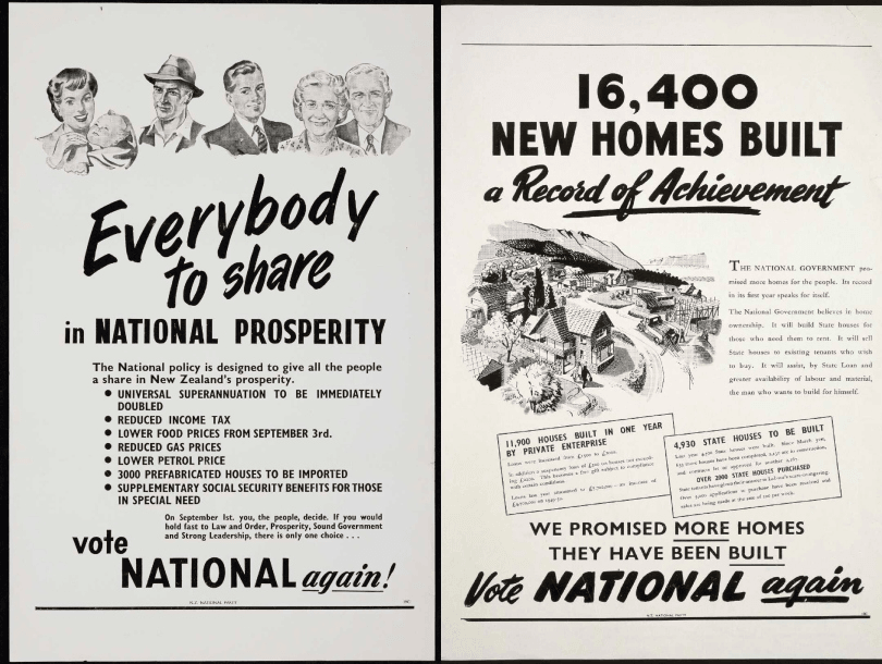50. Vote Labour again (Labour, 1949) / Vote National again (National, 1954)