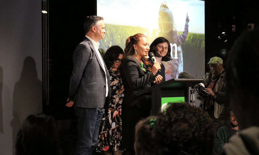 “My utmost congratulations to my tungāne Peeni Henare in the Labour Party, who looks like he is ahead enough to be winning and retaining his electorate seat,” she continued. “I have enjoyed working with Peeni Henare and will continue to work with him to represent and get the very best for Tāmaki Makaurau. I also want to acknowledge John Tamihere, who did an outstanding job in the way that only John Tamihere can, bringing an unapologetic kaupapa Māori politics back to Tāmaki Makaurau.” When she thanked “his incredible co-leader Debbie Ngarewa-Packer”, the crowd screamed with joy.