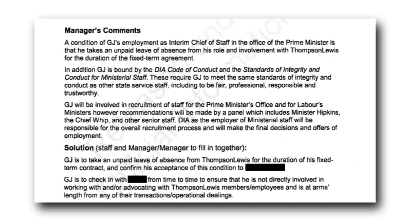 Correspondence released under the OIA suggests that GJ Thompson, the lobbyist who took a ‘leave of absence’ to work alongside Jacinda Ardern, failed to meet undertakings to alert managers as conflicts arose, writes Asher Emanuel