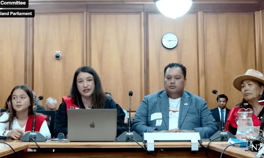 Kapa-Kingi and the Greens’ Hūhana Lyndon wiped tears from their eyes after Te Rūnanga-Ā-Iwi-O-Ngāpuhi’s Moana Tuwhare, Mane Tahere (CEO) and Alva Pomare opened their submission with a karakia, led by Tuwhare’s young daughter. Tuwhare warned the bill had “distinct implications” on Ngāpuhi’s status as an unsettled iwi, and argued that as the first iwi to make contact with the British monarchy, Ngāpuhi had an established relationship with the Crown long before the Treaty was signed.