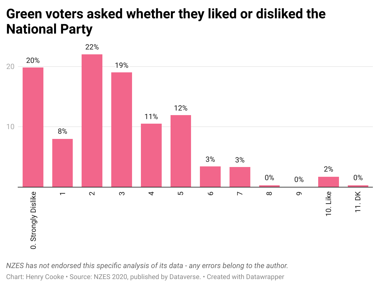 Remember all that stuff I said about the Green Party’s voters hating National? The 7000 or so members of the Green Party make them look like libertarians. And in the Green Party the members have to OK any potential deal to go into government. I’m not the first to say this, but the members would simply stop this from even getting started. They would punish even a bit of strategic ambiguity quite fiercely.