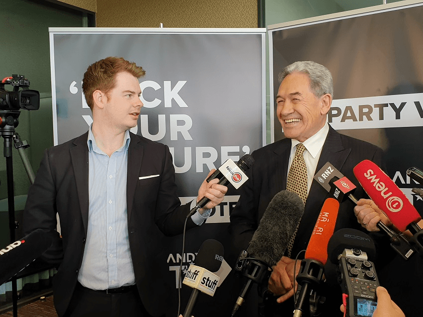 In the press conference following the speech, Herald political reporter Jason Walls mistakenly quoted New Zealand First’s campaign slogan ‘Back Your Future’ as ‘Back To Our Future’. “Read it again slowly,” Peters joked.