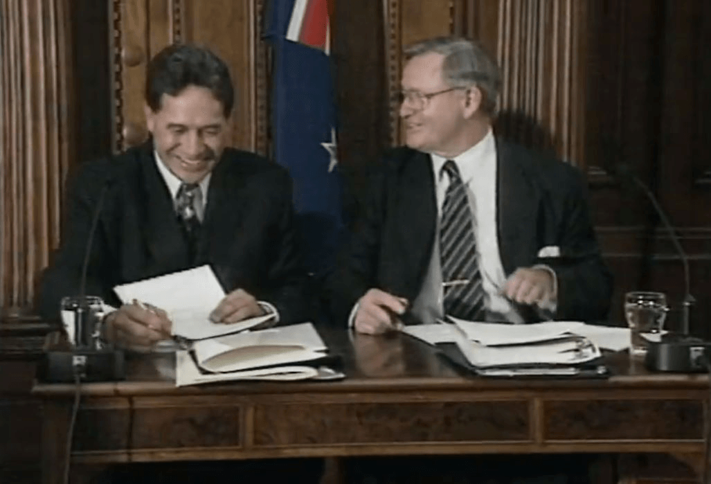 By the two-year mark, the coalition collapsed. The Evening Standard had warned in 1996 that NZ First’s betrayal of Kiwis who had voted for it to get National out of government “may result in the party’s slow demise rather than its strong survival.” This prediction aged well. The party’s popularity plummeted, and it was punished in the 1999 election by falling below 5%, and would have dropped out of parliament had Peters not retained his Tauranga seat by a whisker. Also punished was National, beaten by Labour by 8 points.