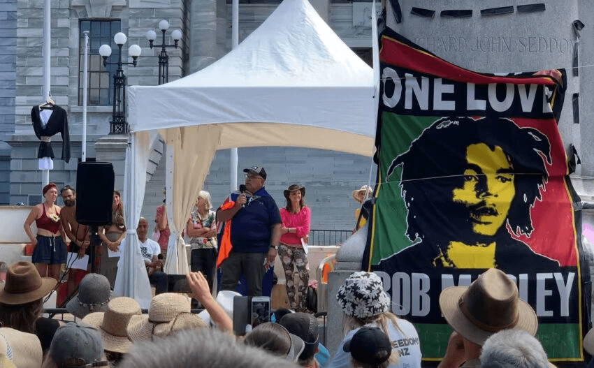The Social Credit Party (established 1953) will be best remembered by many for its success, as a proponent of the economic theory for which it is named, under Bruce Beetham in the 70s and 80s. After a detour and a fleeting name change, it has continued to work hard under Chris Leitch, however, pumping out press releases and occasional full-page newspaper ads. Leitch travelled to Wellington and spoke to protesters on February 11. He said it was time for a party “that is prepared to speak out when they know our democracy, our freedoms, and our sovereignty are under attack”.