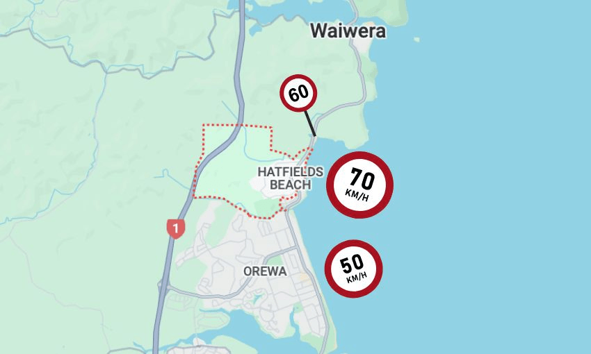 The Twin Coast Discovery Highway passes through a number of suburbs on the Hibiscus Coast. Like all major roads, the speed limit changes as it passes through residential areas. In beachside Ōrewa, it’s set at 50km/h. Slightly further north on the rural stretch leading into Waiwera, it’s also 60km/h. But between the two sits the small suburb of Hatfields Beach, where the highway winds past residential streets. The speed limit there? As of late March, 70km/h.