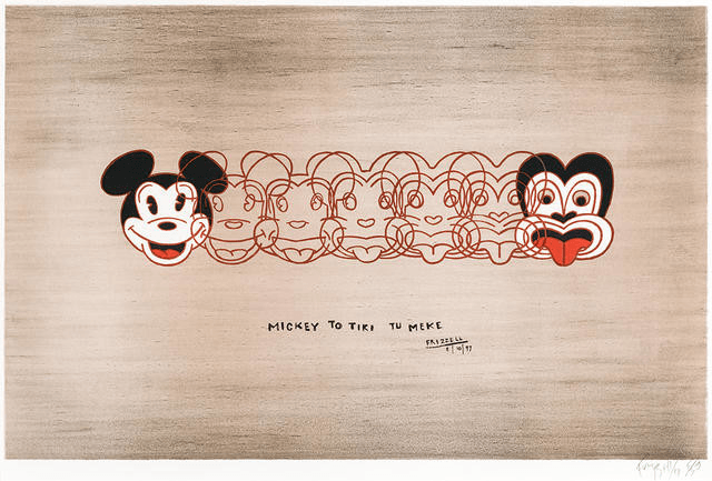 The half-page ad taken out in today’s print edition of the Weekend Herald and on its website features an illustration of former National party leader and prime minister, John Key, morphing into outgoing Air New Zealand chief executive, Christopher Luxon. The image is a play on Dick Frizzell’s 1997 piece ‘Mickey to Tiki Tu Meke’.