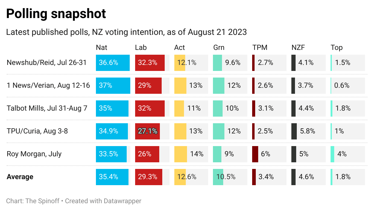 What matters with polls is the pattern, and the pattern as far as Labour is concerned in this poll is clear enough. January, after the Hipkins bounce: 38%. March: 36%. May 35%. July: 33%. August: 29%.