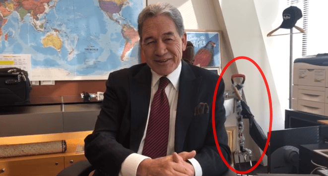 Update: Some actual facts, courtesy of Peters’ office, and the statement could not be more perfect: “The fork was a gift from staff in his ministerial office relating to a story of his childhood up in Northland he’d prefer to keep private, and ‘making hay while the sun shines’.”