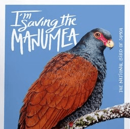 A framed poster, declaring “I’m saving the manumea” backs the campaign to rescue the national bird of Samoa from the brink of extinction. There are said to be fewer than 200 still around.