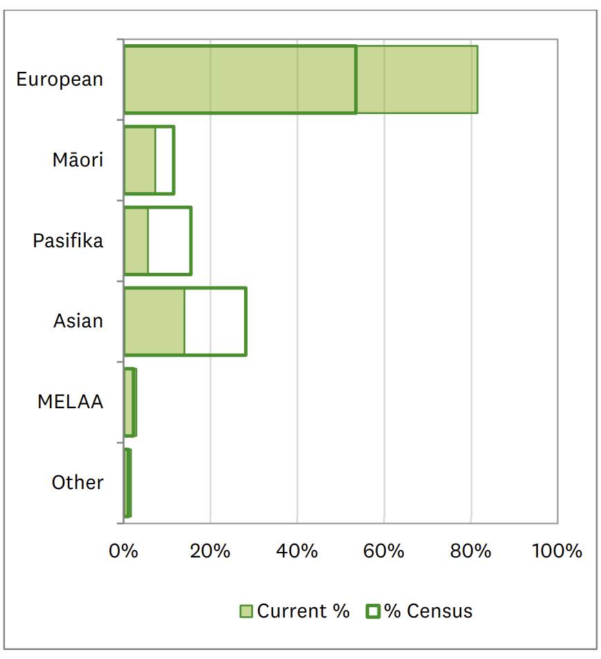 According to data provided to The Spinoff, 82% percent of those who had submitted by the start of this week identified as ethnically European, despite making up 53.5% of the Auckland population, according to 2018 census data. Māori accounted for 7% of responses (11.5%, says the census), Pasifika 6% (15.5%) and Asian 14% (28%).
