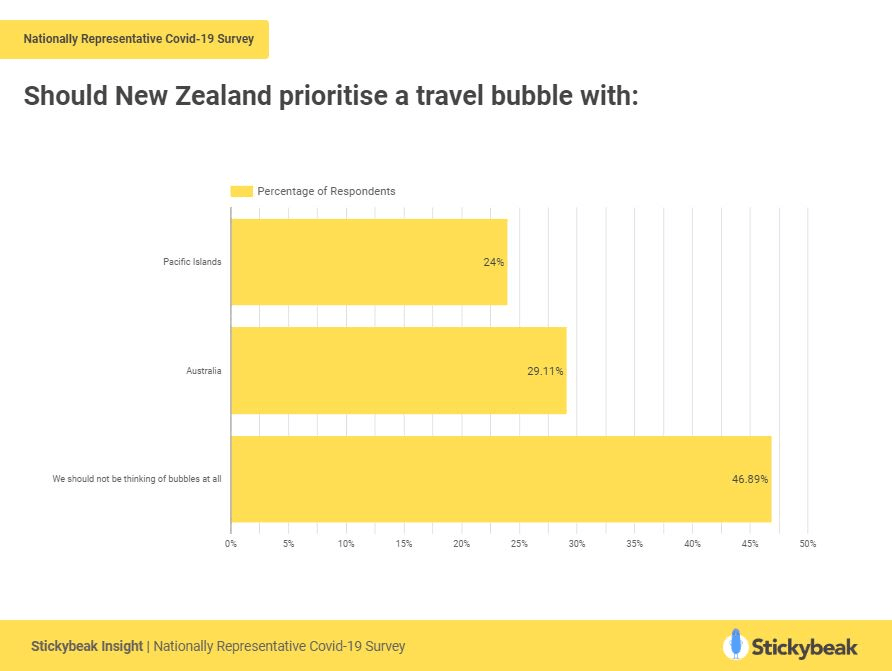 Some of the air seems to have come out of the international bubble clamour, too. As the state of Victoria experiences a spike in community transmission, we asked whether New Zealand should prioritise a border opening with Australia or the Pacific Islands or whether we “should not be thinking of bubbles at all” at this time, some 47% went for the latter. Enthusiasm for an Australian bubble edges out the Pacific option, but only by five points.