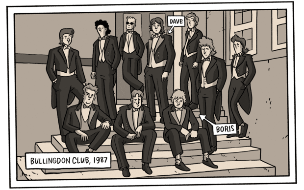 The fourth living former prime minister David Cameron, whom we should angrily blame for the entire accursed shitstorm of Brexit, was frenemies with Boris from way back, in the Bullingdon club, a collection of the worst imaginable elements of Toff Britain.