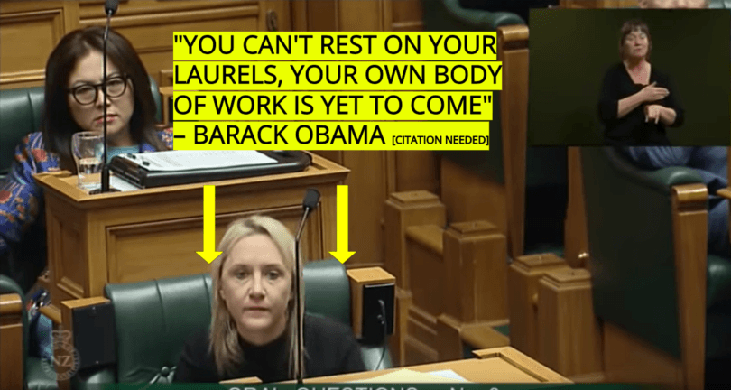 A good comedian never laughs at his own jokes. This is a stance that Chris Hipkins firmly doesn’t take. Oh how he laughs. It’s a little unnerving and possibly gives him a psychological edge while at the same time inducing pangs of pity in the viewer. “It will take some time to deal with the nine years of neglect we inherited,” he said, before sitting down with an expression on his face that justifies the existence of the word “guffaw”.