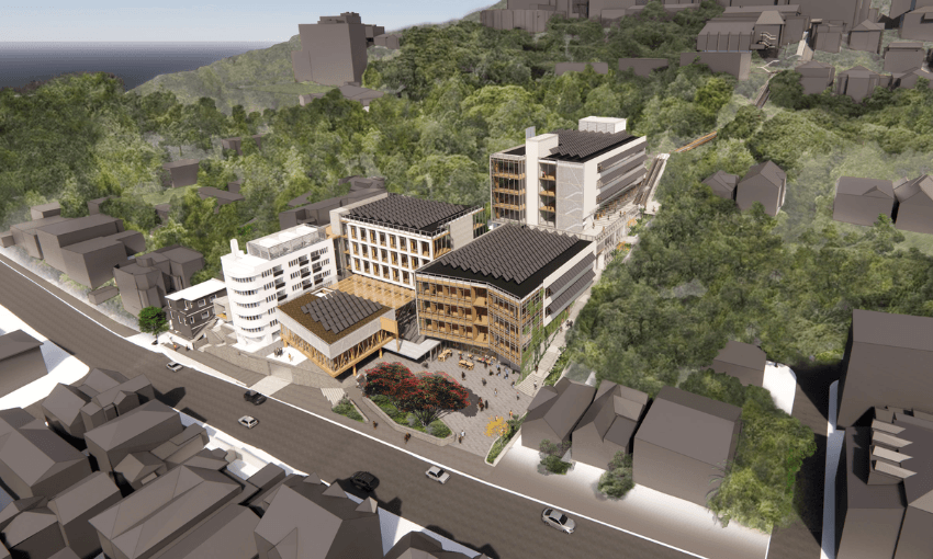 The university tried again in 2020 with a proposal called Te Huanui – Pathway to the City, featuring three academic buildings, an atrium and a plaza that would provide a pedestrian connection to the Kelburn campus. Responding to public sentiment that favoured new housing, it later changed its plan to be focused on student accommodation.