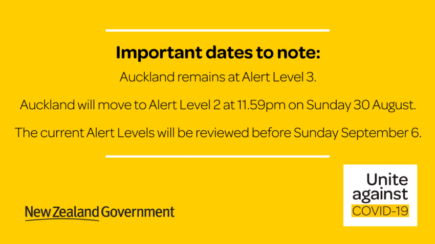 Auckland will stay in alert level three until the end of the weekend – 11.59pm this Sunday. The supercity will then shift into alert level two, but restrictions on mass gatherings will remain.