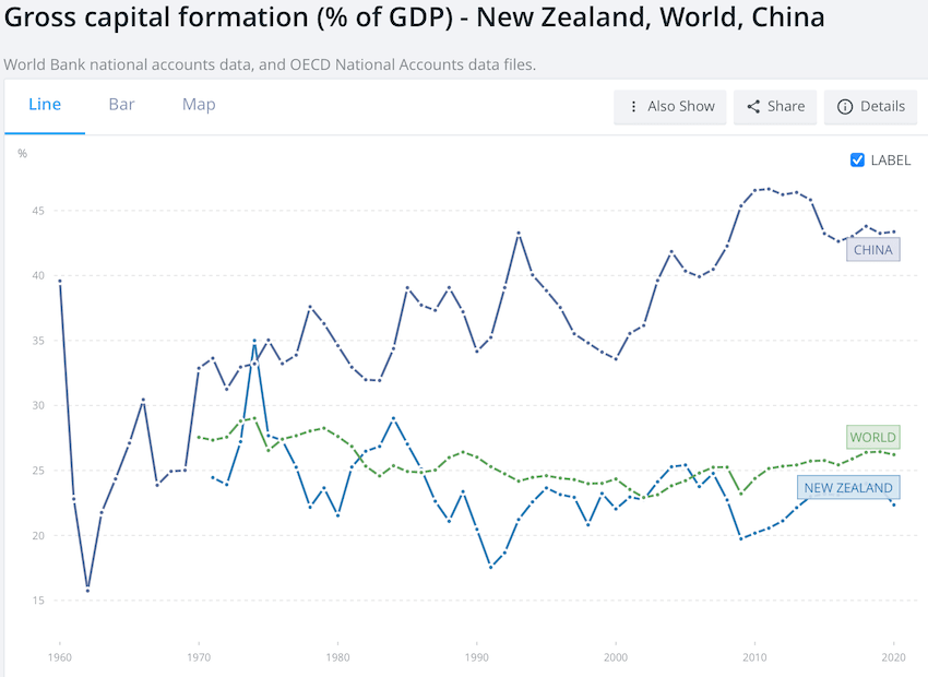 The missing link in the theory is investment. Small businesses would need to invest in technology, consolidation, training and new management systems to increase output with the same number of workers. That requires a combination of their own investment and central and local government investment in infrastructure. That investment is desperately needed. For 30 years, Aotearoa’s households and businesses chose to invest in residential land, rather than in businesses. Governments of both flavours also chose low taxes and no taxes on leveraged gains in residential land values because that makes people on relatively low wages (who have high living costs and own homes) feel wealthy and keeping voting in governments.