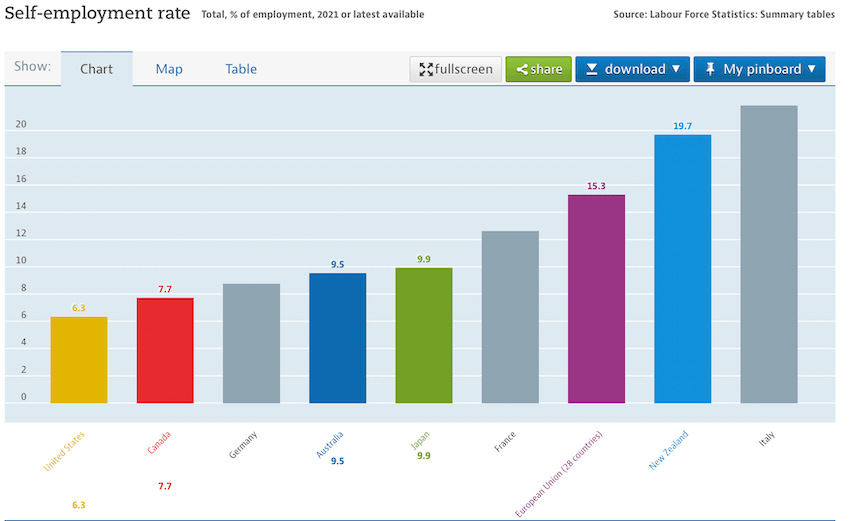It’s one reason why we have one of the highest small-business-ownership rates and self-employment rates in the world. Our rate is more than twice that of Australia and three times that of the United States. Both have capital gains taxes and effectively incentivise the alternative of business investment, which encourages higher R&D, technology investment and international competitiveness.