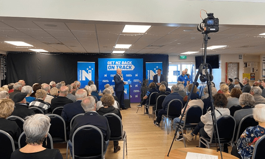 If it was an attempt at refreshing his image – a suggestion Luxon strongly rejected when I put it to him – he picked an unusual location for it. Fronting a packed room of largely sympathetic, white-haired voters at the Birkenhead Bowling Club on Auckland’s North Shore, the National leader rattled through several pillars of the party’s election year talking points during an hour-long speech that, he later told me, was off the cuff. If it sounded well rehearsed, even without any prompts, that’s probably because these are issues he’s been talking about consistently for several months now. The cost of living crisis, concerns over crime, worries about New Zealand’s slipping standard of education. He knew the talking points and the numbers inside out and his audience lapped it up.