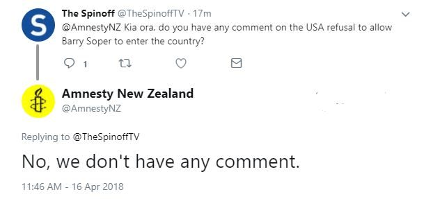 Soper, who has a wife, “believes a visit to Iraq in 2015 with former prime minister Sir John Key may have been the reason for his rejection – although he has travelled to the US without issue since then.”