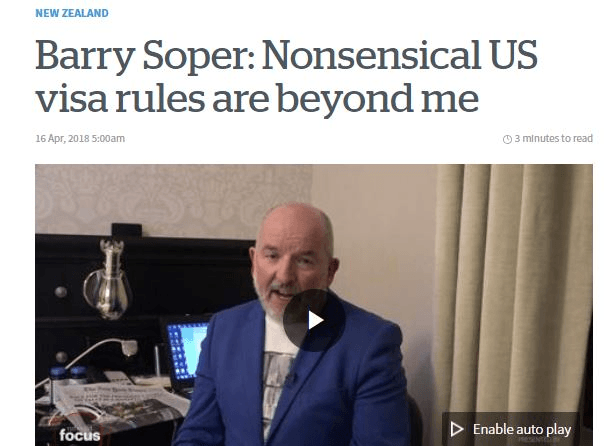 “Broadcaster Barry Soper has been banned from flying through the United States,” leads the story.