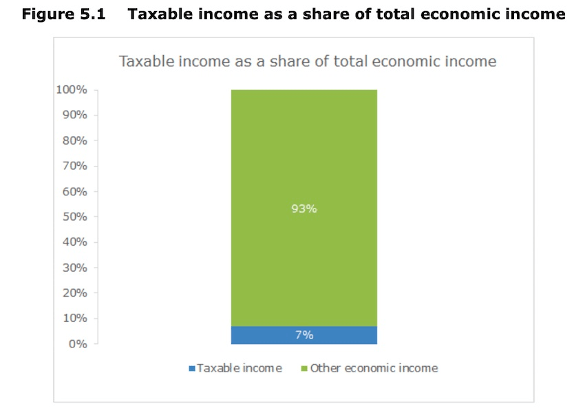 This extremely bleak and basic graph shows a simple truth. Only a tiny portion of the wealthiest New Zealanders’ income is taxable. Just 7% of the 311 wealthy New Zealanders’ annual earnings was taxable income (like salaries). Meanwhile, the majority of New Zealanders earn all (or nearly all) of their income through salaries and therefore are taxed on 100% of it. But the wealthiest don’t become wealthy by working hard for a big salary. That other 93% of their annual income is largely drawn from and held in trusts, assets, business entities and property.