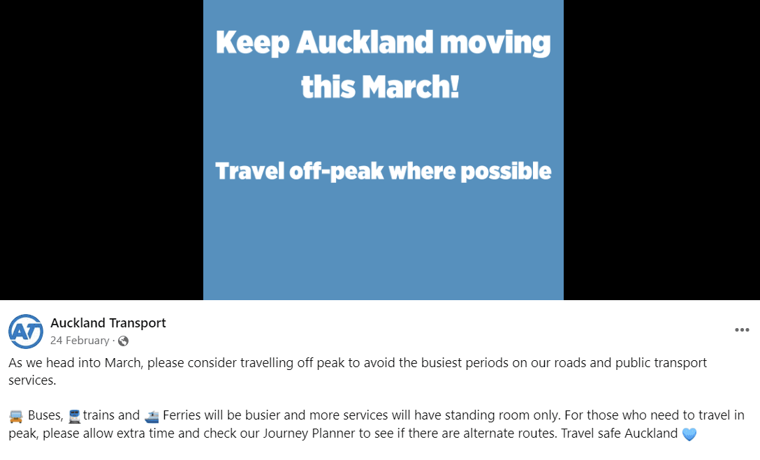 Ahead of the traditionally strained month of March, impacted in part by the return of tertiary students to campus, AT warned commuters in a controversial social media post: “Please consider travelling off-peak to avoid the busiest periods on our roads and public transport services. Buses, trains and ferries will be busier and more services will have standing room only. For those who need to travel in peak, please allow extra time.”