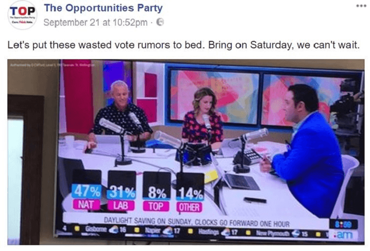 No-one sucked worse than serious evidence-based statistically informed Policy party TOP though. It rounded out the campaign by citing a random poll that showed up on the AM Show’s news ticker, and having Gareth Morgan angrily moan into a webcam about how the party would exceed its 2% polling.
