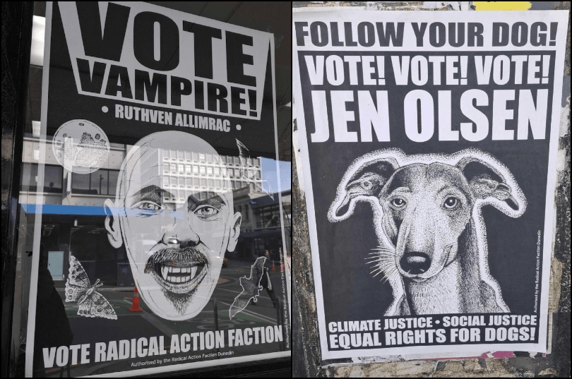 (The Radical Action Faction’s Ruthven Allimrac and Jen Olsen, Dunedin City Council)