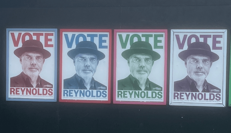 I’m torn on these ones. On the one hand I appreciate seeing actual effort in posters. On the other, it’s very Obama 2008 except in 2008 everyone knew Obama’s first name. This guy better hope he’s the only Reynolds on the ballot. / Madeleine Chapman