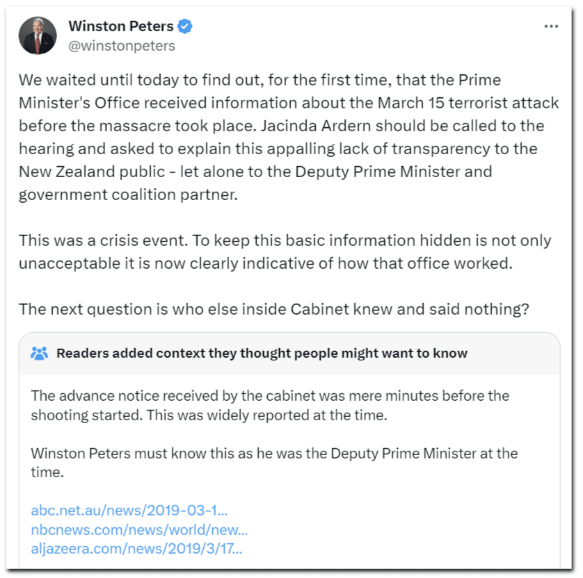 Moreover, with the greatest of respect, kindly consider that Peters was not in fact stating, “We waited until today to find out, for the first time, that the Prime Minister’s Office received information about the March 15 terrorist attack before the massacre took place.” No. He was using the Twitter search function, and merely trying to ascertain if there were any tweets on waiting until today to find out, for the first time, that the Prime Minister’s Office received information about the March 15 terrorist attack before the massacre took place.