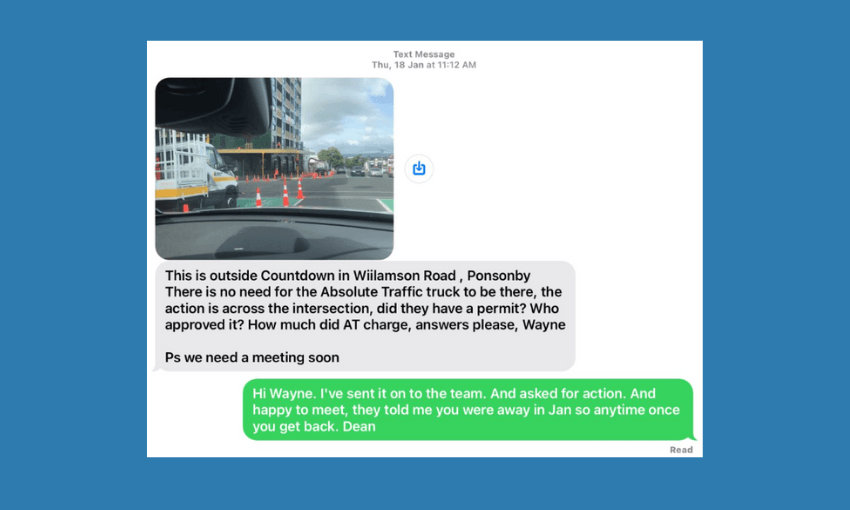 We’ve received a cache of Wayne Brown’s texts to the chief executive of Auckland Transport, and there’s a lot of complaints about road cones.