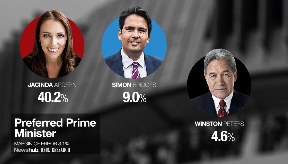 Instead, however, Bridges woke to a blizzard of speculation about his performance as leader. The poll put him on 9% in the preferred prime minister stakes, well behind Jacinda Ardern’s 40%, prompting Newshub to lead with “Simon Bridges failing to connect with voters” and “some seriously bad news for Simon Bridges”. As others duly noted, this was “the lowest rating for any National leader over the past 10 years of Reid polling”.