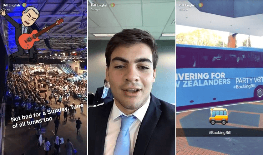 It was a family affair at the National Party campaign launch in west Auckland yesterday. Dr Mary English was alongside her husband all afternoon, and esteemed at length in his speech. Daughter Maria took the stage to sing the national anthem. And son Xavier took charge of the prime minister’s Snapchat account, though you could be forgiven at first for thinking you’d stumbled on a Tom Sainsbury spoof. Max Key will be reviewing Xavier’s Snapchat game for the Spinoff later in the week. (He won’t).