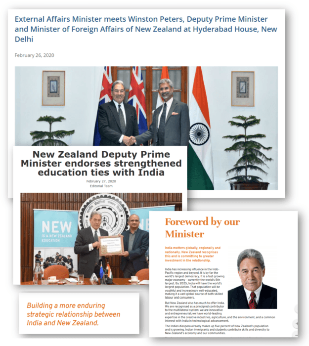 The New Zealand First MP’s attack on ‘students that have come from India’ comes as another prominent New Zealander completes a visit to India embracing, well, students that have come from India.