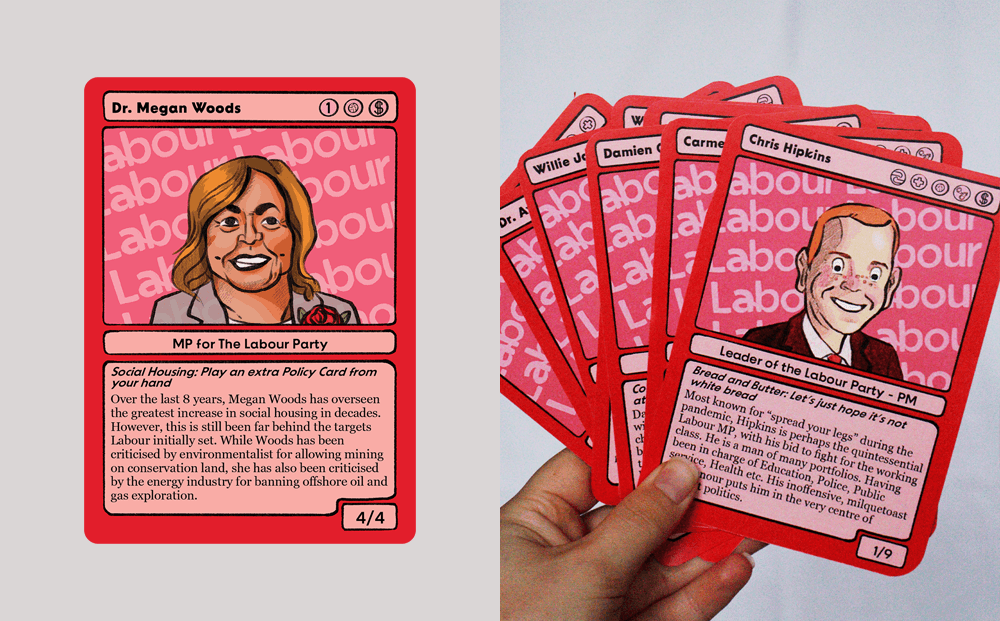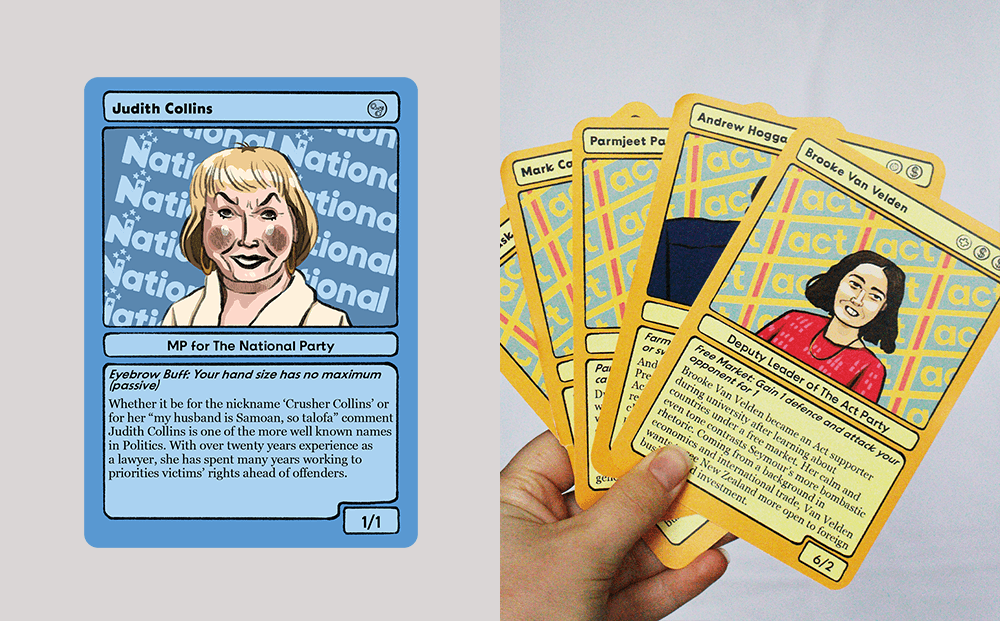 Can learning about politicians and policies be fun? A 23-year-old Ōtautahi illustrator thinks so, if you turn it all into a card game.