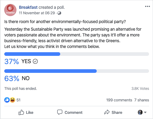 Sustainable New Zealand’s launch was met with extensive media coverage and a wide variety of opinion pieces. People certainly haven’t been indifferent. Our membership numbers continue to climb and, following a robust interview with John Campbell on Breakfast, a TV One online poll, unscientific but with close to 4,000 participants, produced the following very promising results.