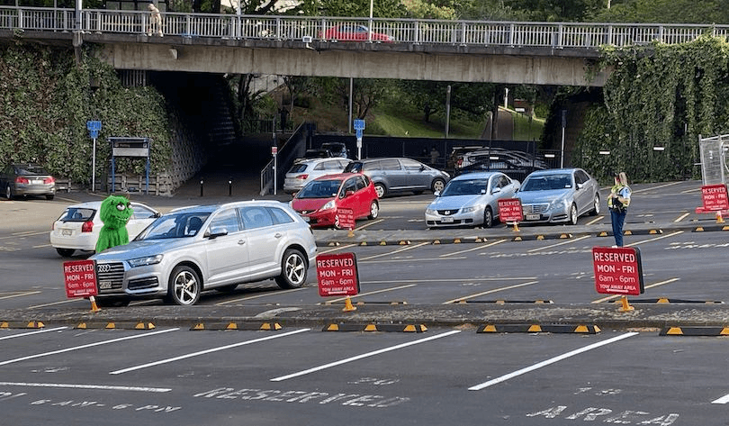 Will tonight’s head-to-head, presided over by Paddy Gower and with a real live audience – as opposed to last week’s John Campbell-helmed, audience-less affair – bring forth more zingers? Here’s hoping. The Spinoff’s deputy editor Alice Neville will be watching in the office and bringing you updates here, while editor Toby Manhire will be in the audience downtown at Q Theatre – along with, apparently, the Taxpayers’ Union’s “debt monster”, seen below parking his car nearby.