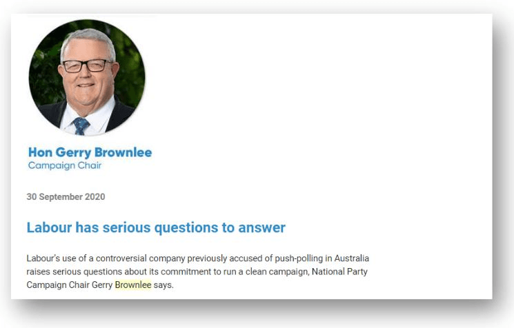 A spokesperson for the National Party said Brownlee wasn’t alleging that Labour has used push polls but was only asking if they were doing such things.