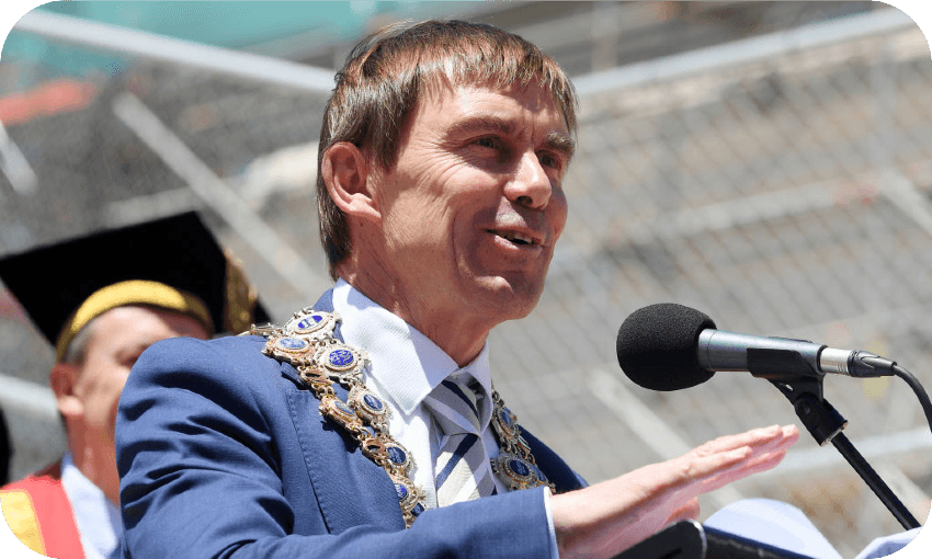 He’s chipper, with a boyish energy, and seems genuinely excited about re-entering politics. He’s eager to rattle off the highlights of his mayoralty: a new district plan, a city arts and culture strategy, committing to a rebuild for the central library, reopening theatre venue Hannah’s Playhouse, and a new performing arts venue at dance and drama centre Te Whaea.