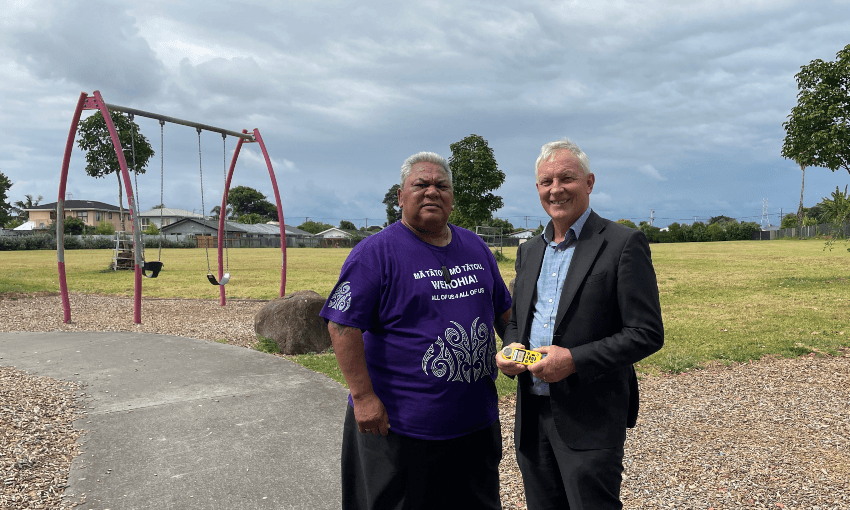 It’s mid-morning when I meet Goff, Manukau ward councillor Alf Filipaina and a bevy of staff at a playground in Māngere East’s Sutton Park. Halfway through our chat, a council officer informs us the temperature has just ticked over 33 degrees, further underlying the purpose of our interview.